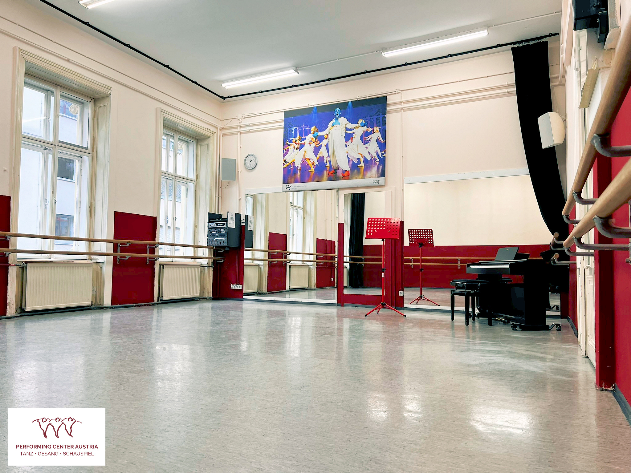 Studio 4 ist mit 40 m2 das kleinste Tanzstudio im Performing Center Austria, das aber durch seinen quadratischen Grundriss, dem persönlichen Charakter und dem lichtdurchfluteten Raum sehr beliebt ist. Es befindet sich im 1. Stock und ist regulär über Studio 3 zugänglich; in Ausnahmefällen kann es alternativ über ein eigenes Stiegenhaus betreten werden. Eine großzügige Fensterfront zur Zieglergasse verleiht dem Raum zusätzliche Helligkeit und Offenheit.