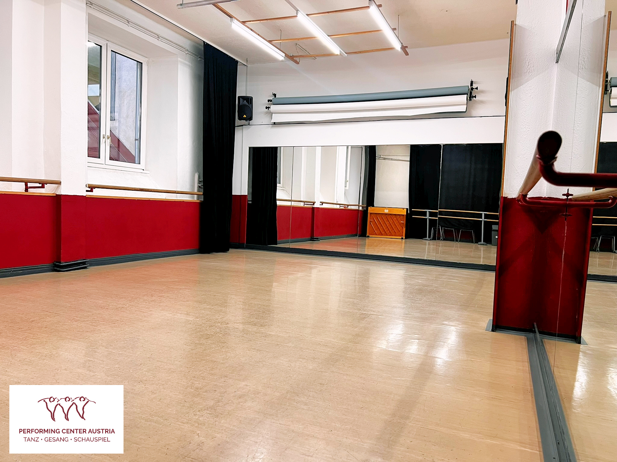 Mit 60 m² ist Studio 5 im Performing Center Austria ein kompaktes Universalstudio, das durch seine Vielseitigkeit für unterschiedlichste Anlässe genutzt werden kann. Es liegt ebenerdig von der Rezeption aus gesehen und verfügt über Fenster zu einem ruhigen, begrünten Innenhof. Dank seiner unmittelbaren Nähe zum Haupteingang ist es besonders leicht und unkompliziert erreichbar. Studio 5 eignet sich sowohl als Tanz- oder Gesangsstudio wie auch für kleinere Gesangs- und Schauspielcastings. Häufig wird es darüber hinaus als Fotostudio gebucht.